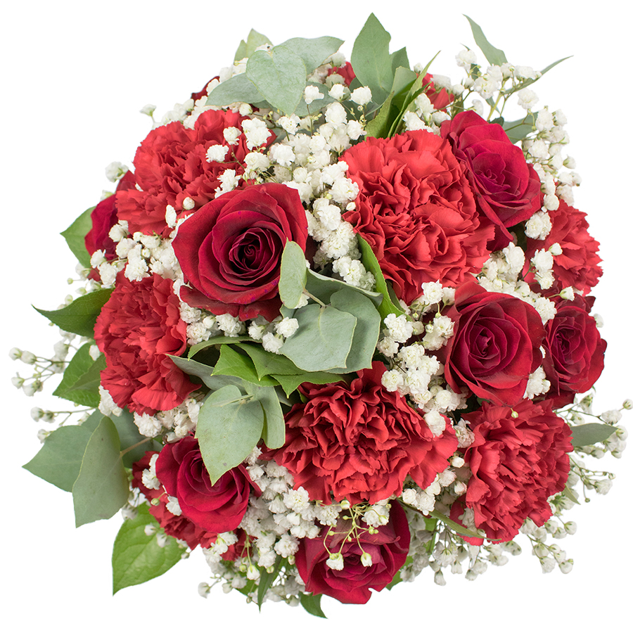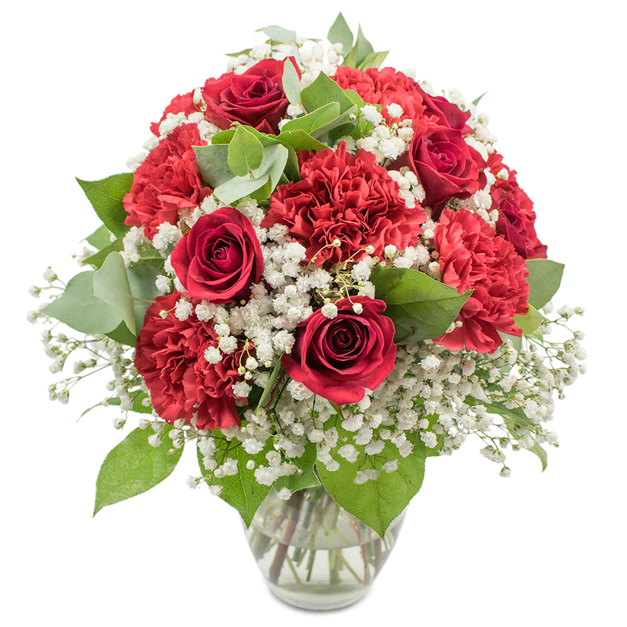 Let this delightful bouquet warm the hearts of your loved ones and deliver your best seasonal wishes! Featuring red roses and carnations, this arrangement speaks of festivity, luxury and joy.